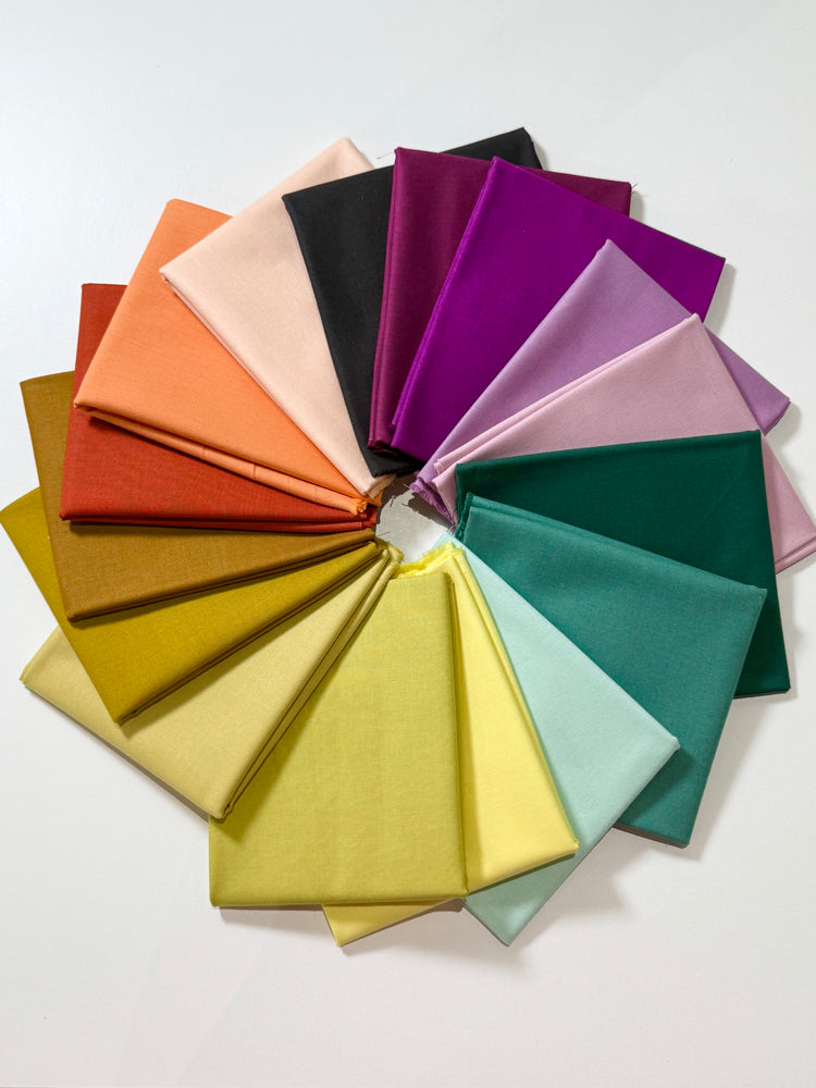 This kit includes 16 fat quarters to make the Throw Sized Aldebaran Quilt (36 x 55 inches) (you'll have a few fat quarters left over). Pattern, backing, and binding sold separately.