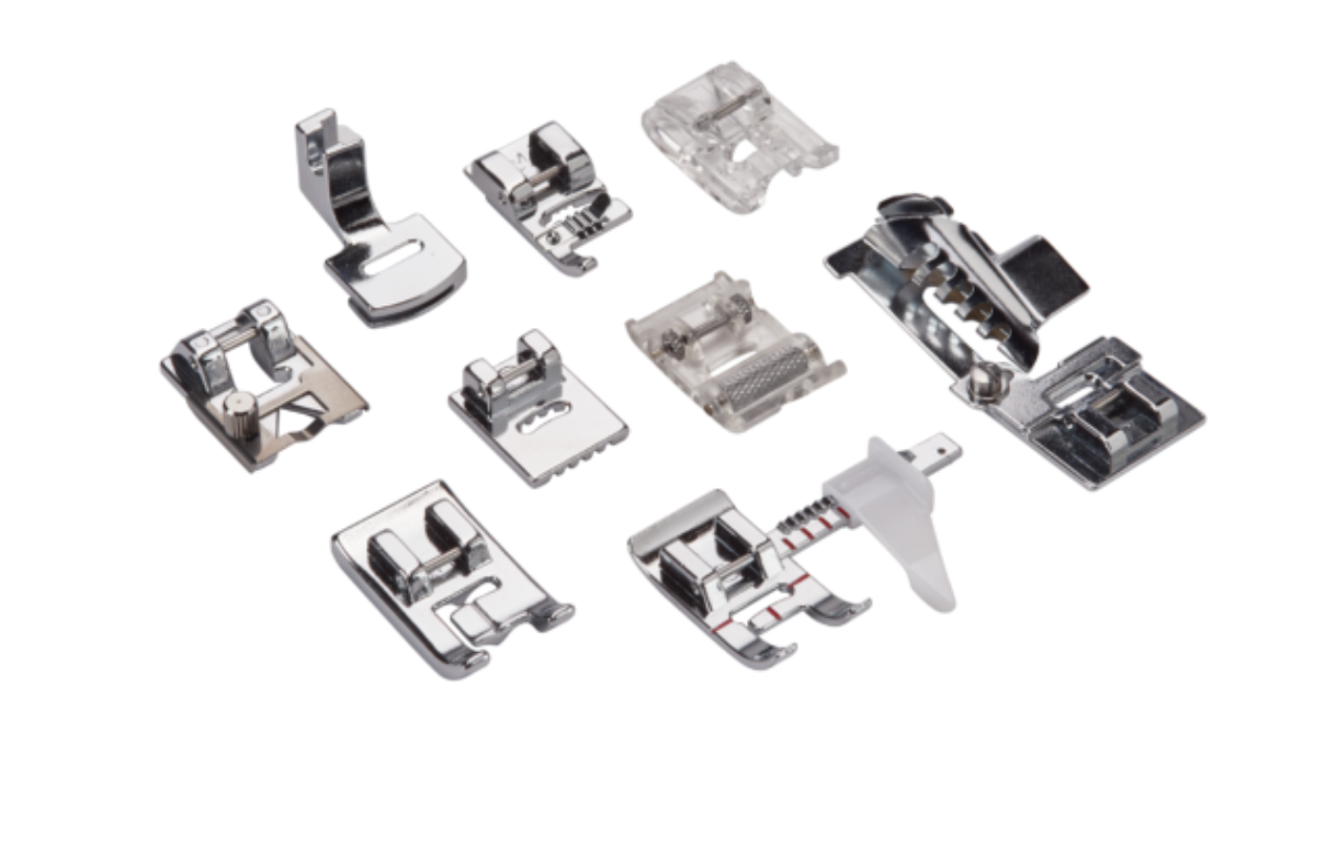 Compatible with the Bernette b33 and b35 machines, this 10 piece accessory set includes the following presser feet: