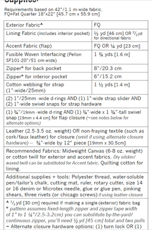 Includes Instructions for making closure using leather/cork/faux leather or different hardware options! Approximate finished size: 9 ½ in wide x 2 in. deep x 7 in tall.Intermediate Skill level.