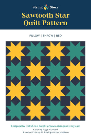 Patterns: Sawtooth Star Quilt - DIGITAL PATTERN by HollyAnne Knight for String & Story