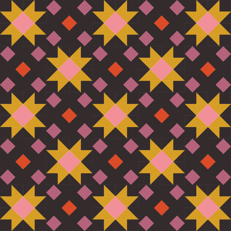 This kit includes 5 cuts (6 yards total) of Ruby Star Society prints and coordinating Paintbrush Studio Solids fabric to make a small throw sized (60" square) Sirius Quilt. Pattern sold separately.