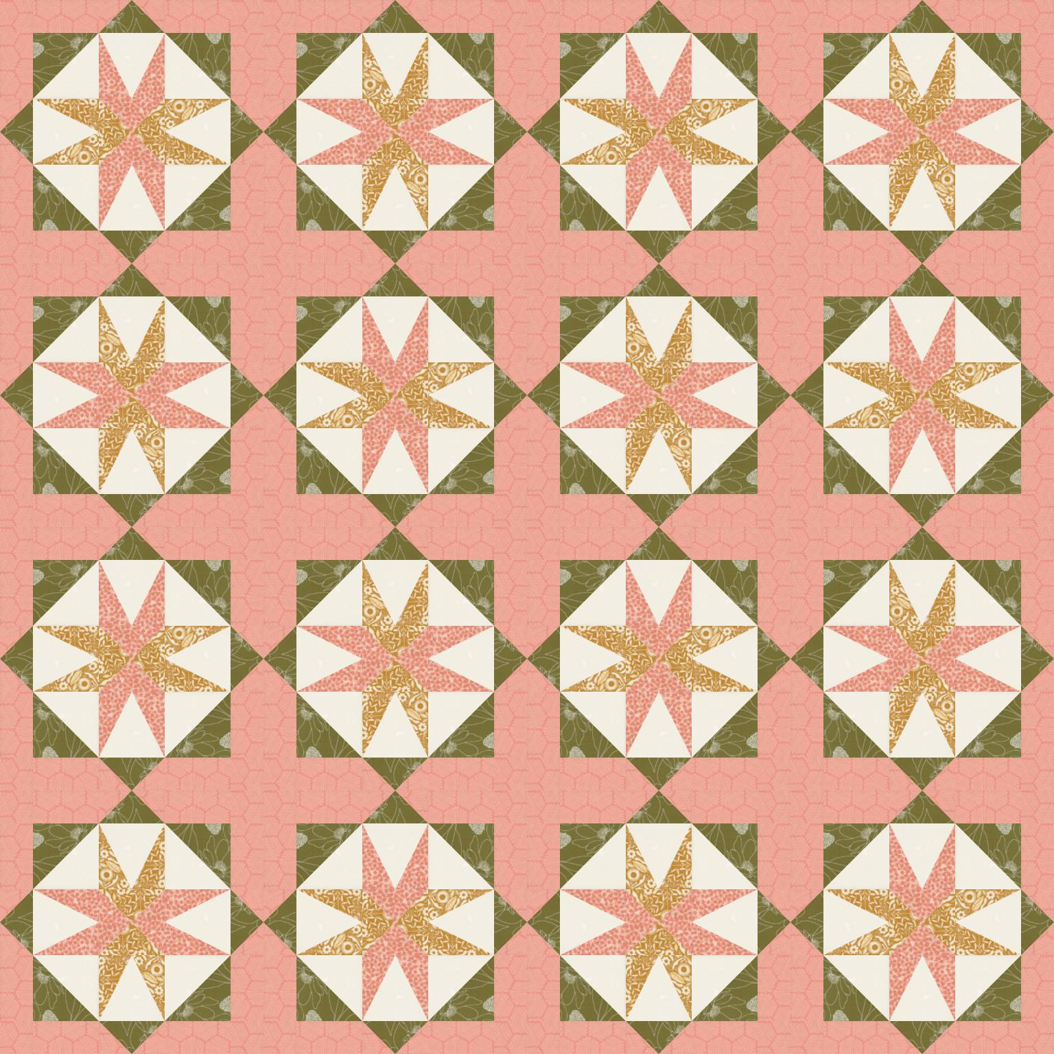 8 1/2 yards of fabric for a Star Island Throw Sized quilt top (16 blocks; 64.5 x 64.5 inches)