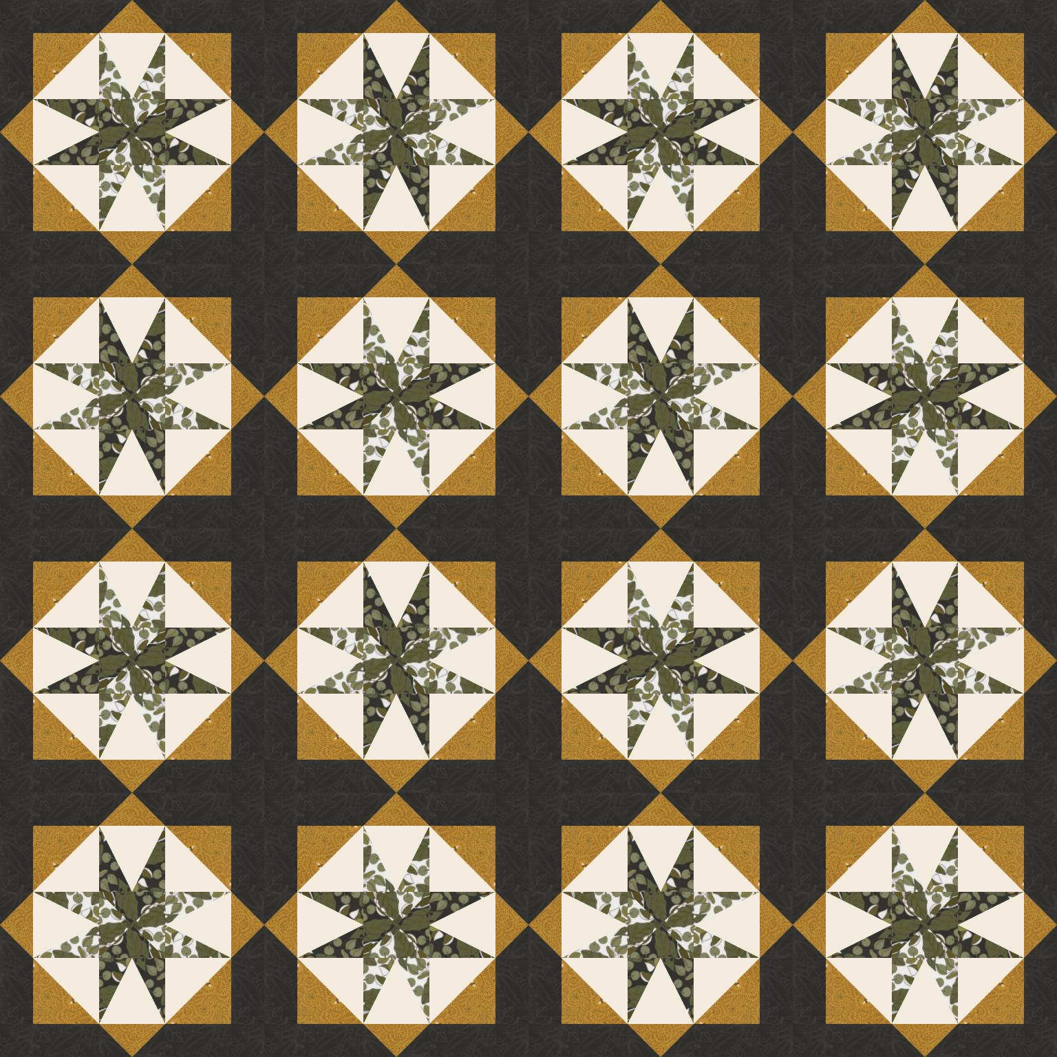 8 1/2 yards of fabric for a Star Island Throw Sized quilt top (16 blocks; 64.5 x 64.5 inches)