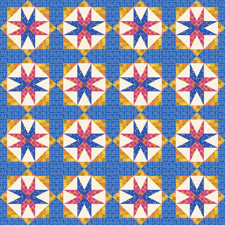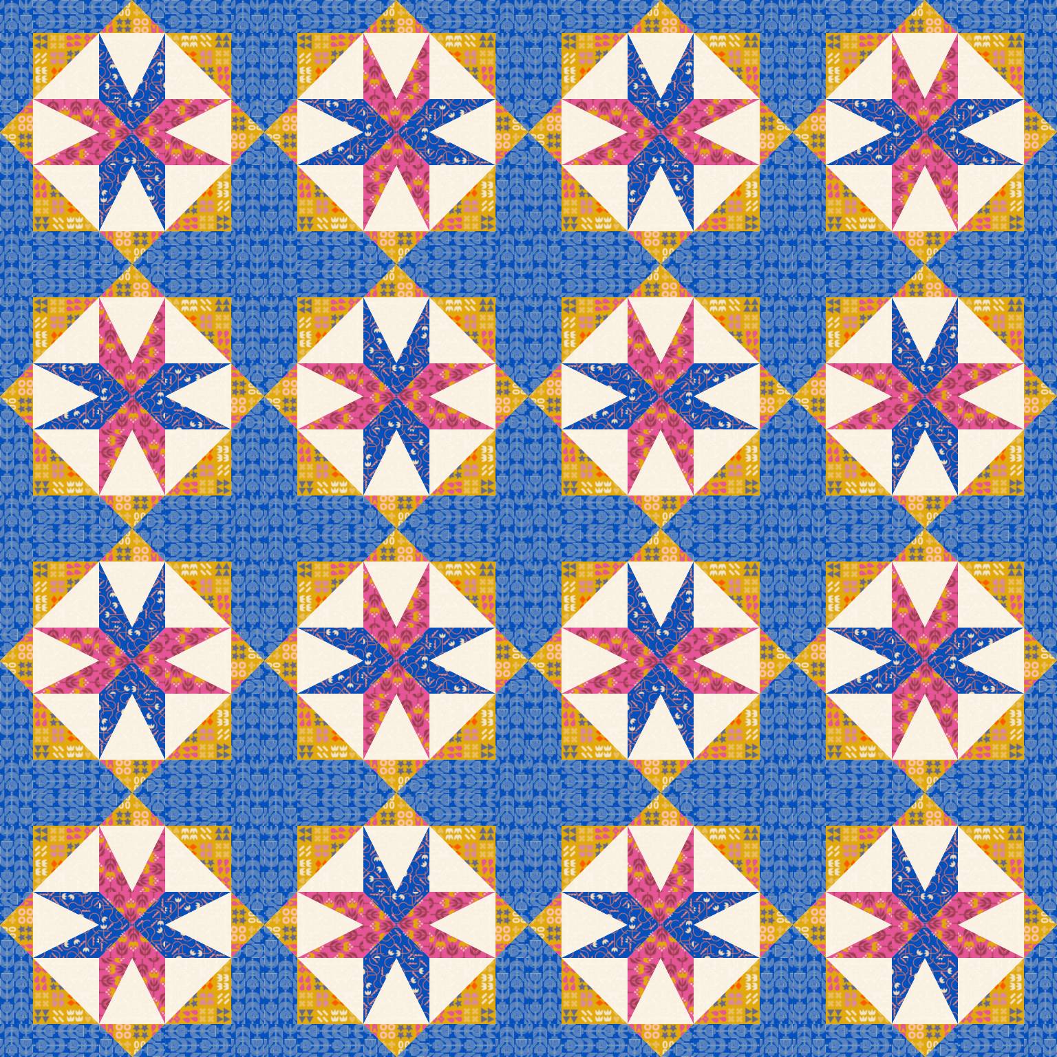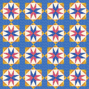8 1/2 yards of fabric for a Star Island Throw Sized quilt top (16 blocks; 64.5 x 64.5 inches)